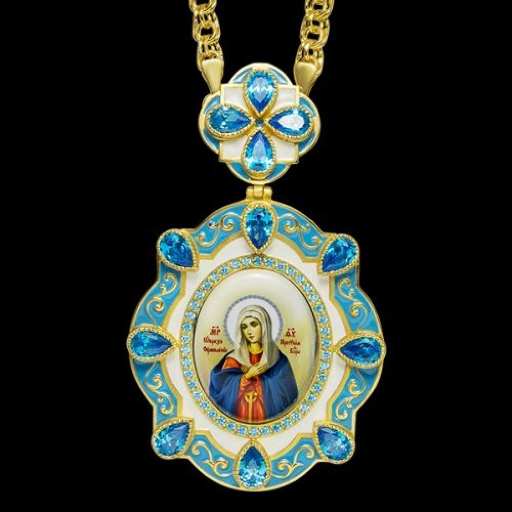 Панагия серебряная с финифтьевым образом и цепью аг-2.7.0505-135П