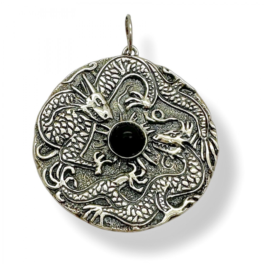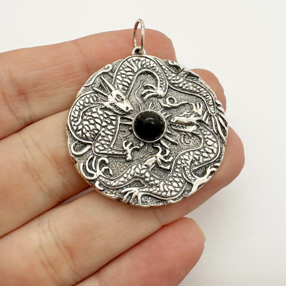 серебряный кулон Дракон с натуральным ониксом — изящное украшение, сочетающее в себе