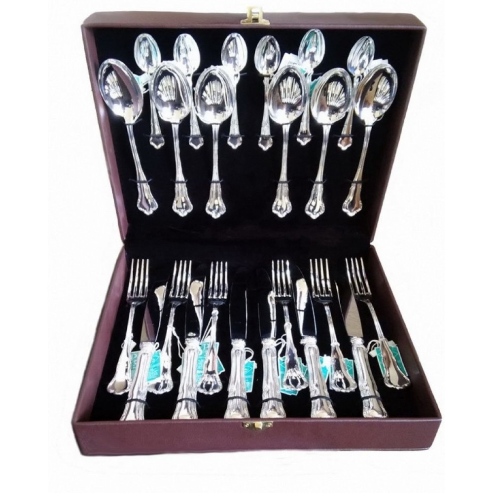 Набір срібних столових приборів "Італія" на 6 персон складається з 24 предметів.