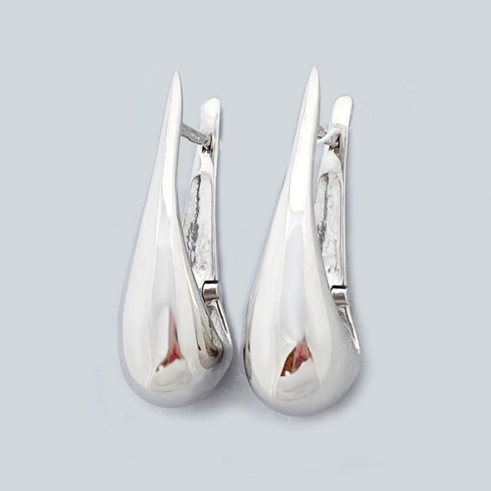 Гладкі родовані сережки у вигляді крапельки. Довжина 3,8 см