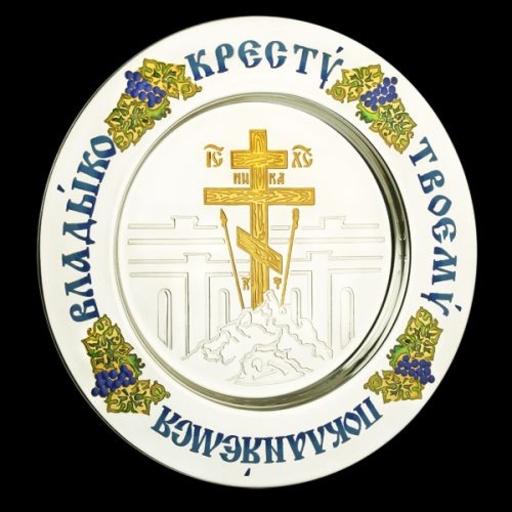 Тарелка церковная латунная "Голгофа" в позолоте аг-2.7.0155ЛП