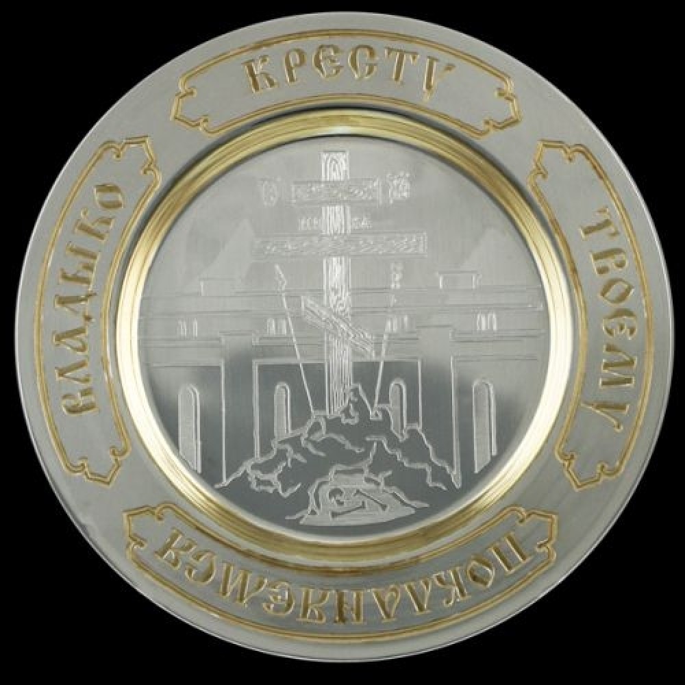 Тарелка серебряная с травлением "Голгофа" аг-2.7.0105
